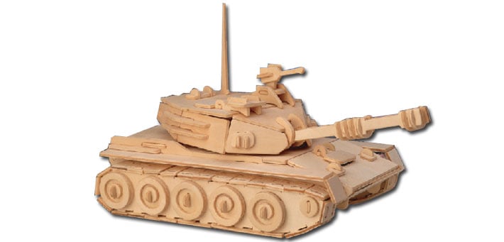 Ξύλινο Τρισδιάστατο Πάζλ - Κατασκευή Tανκ. Διασκεδάζει και εκπαιδεύει! Μπορεί να γίνει και μόνιμη κατασκευή εάν χρησιμοποιηθεί κόλλα (δεν περιλαμβάνεται στη συσκευασία). Επίσης μπορεί να βαφτεί με τέμπερες. Ηλικίες : από 8 ετών και πάνω.