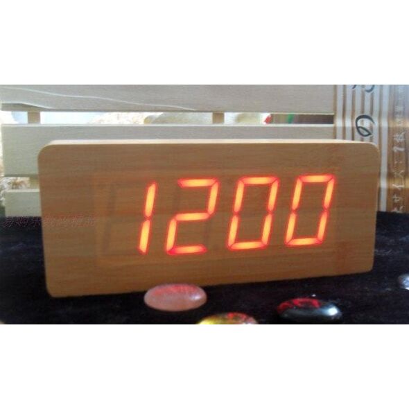 Μεγάλο επιτραπέζιο ξύλινο ρολόι με ημερολόγιο, ξυπνητήρι, LED οθόνη και ένδειξη θερμοκρασίας για στυλ σε κάθε εσωτερικό χώρο.