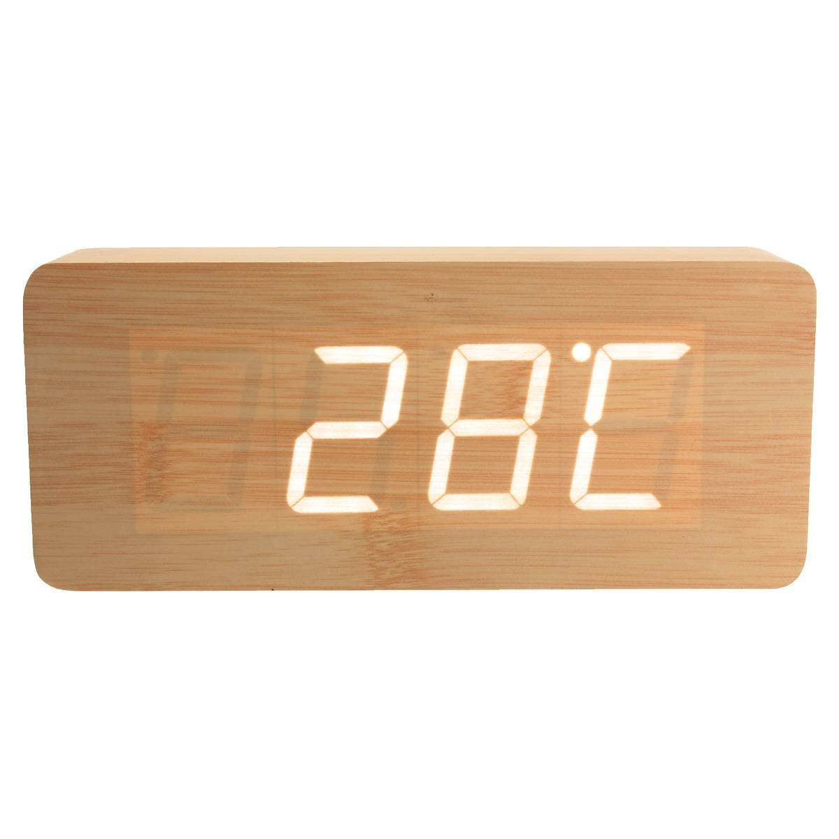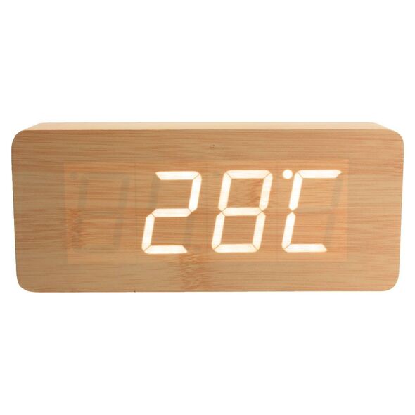Μεγάλο επιτραπέζιο ξύλινο ρολόι με ημερολόγιο, ξυπνητήρι, LED οθόνη και ένδειξη θερμοκρασίας για στυλ σε κάθε εσωτερικό χώρο.