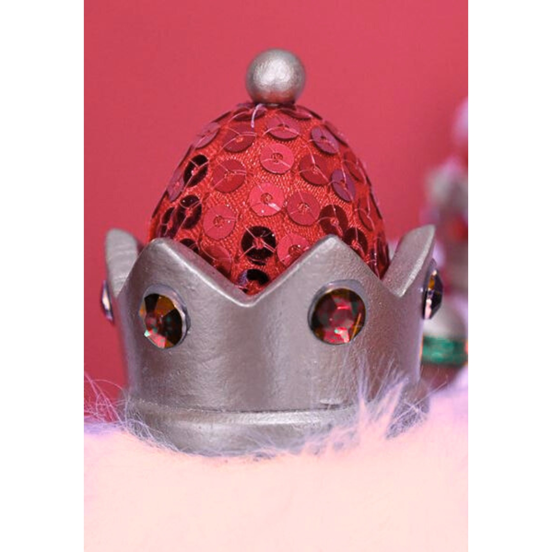 Ο πλούσιος μανδύας, η χρυσή κορώνα με διακριτικά στρας και το σκήπτρο τονίζουν τη βασιλική του παρουσία, ιδανική για το σαλόνι, το γραφείο ή τη βιτρίνα σας.