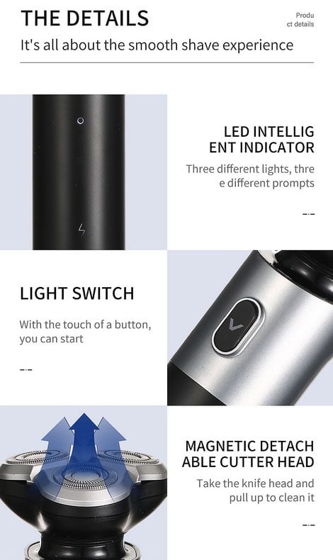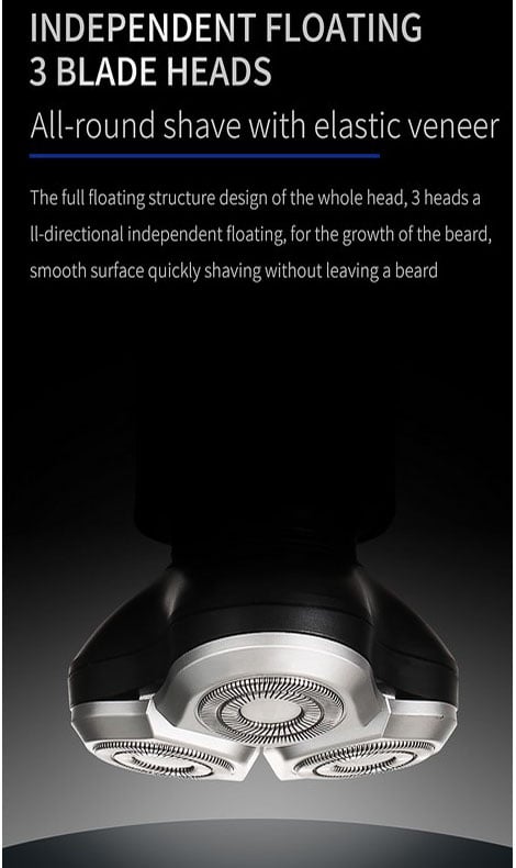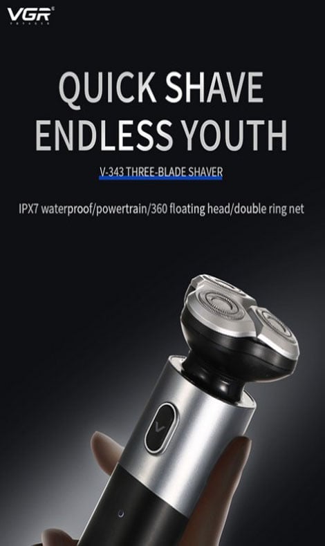 H Επαναφορτιζόμενη Ξυριστική Μηχανή 3 κεφαλών της VGR με το επαναστατικό σύστημα 3D Floating που αγκαλιάζει το πρόσωπο, θα τα καταφέρει να σας χαρίσει ένα αποτελεσματικό ξύρισμα.