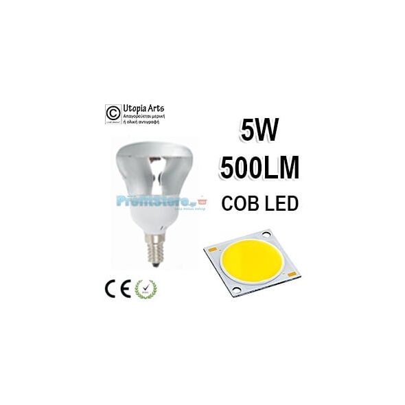 Λάμπα LED τύπου Καθρέπτου R50 E14 5Watt 230v Καθαρό Γυαλί Ψυχρό Φως 6400Κ 500 Lumen