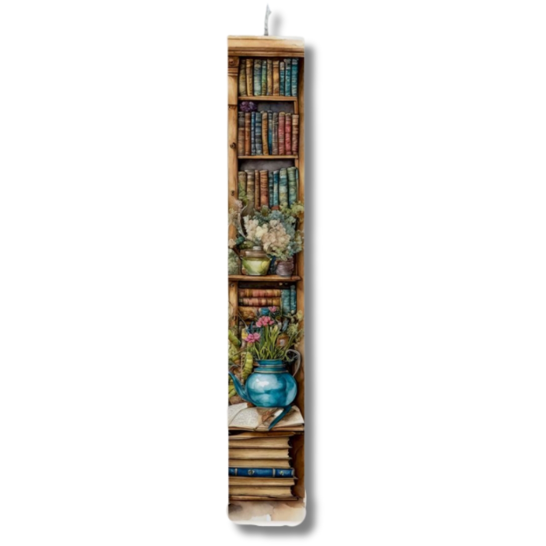 Λαμπάδα Πλακέ Vintage Βιβλιοθήκη & Λουλούδια – Πασχαλινό Κερί με Εκτύπωση Υψηλής Ποιότητας