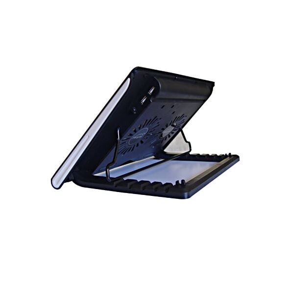 Αυτή η βάση υπολογιστή, είναι κατασκευασμένη από ελαφρύ ανθεκτικό πλαστικό για διάχυση της θερμότητας, με ένα ζευγάρι αθόρυβων ανεμιστήρων να τραβάει τον αέρα.