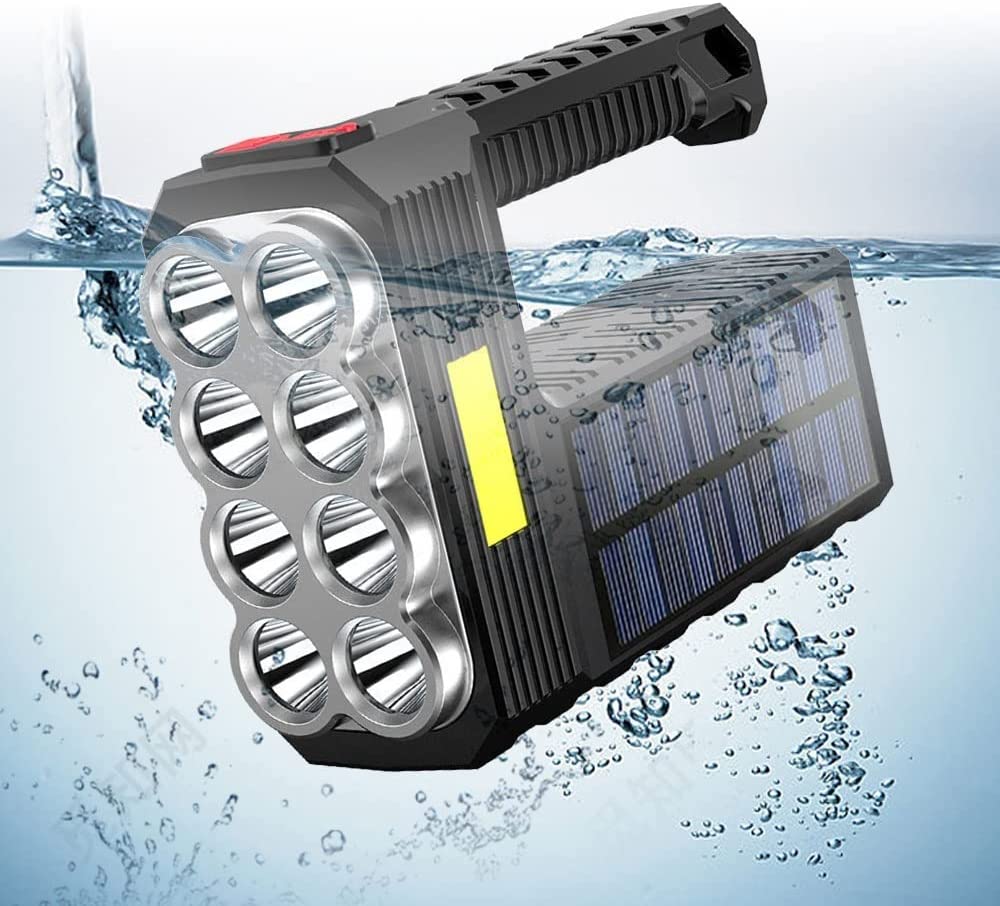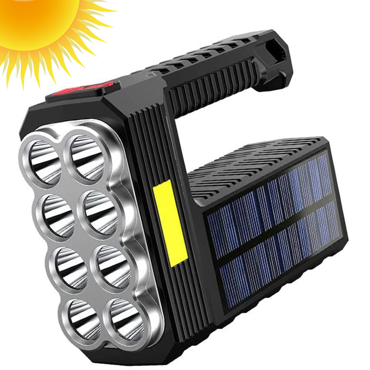 LED Αδιάβροχος Επαναφορτιζόμενος Φακός 20W με Ηλιακό Πάνελ και 4 Λειτουργίες Φωτισμού