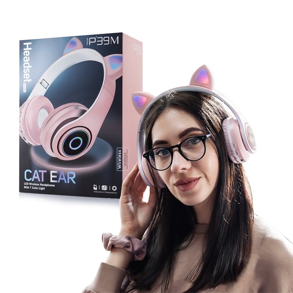 LED Bluetooth Ασύρματα Cat Ear P39M Ακουστικά Αυτιά Γάτας με Εναλλασσόμενο Φωτισμό - Wireless Cat Ear Headphones Ροζ