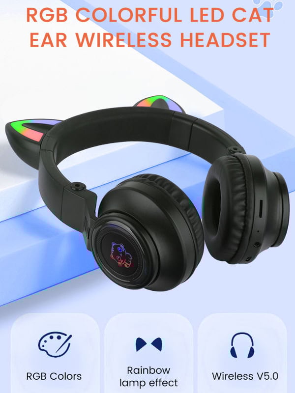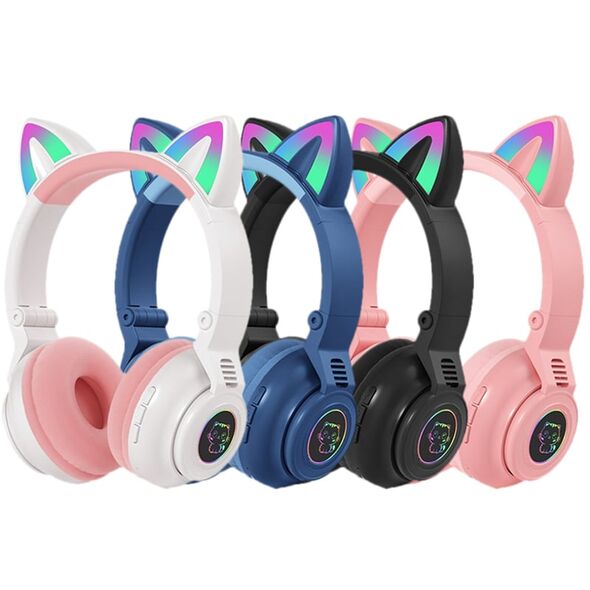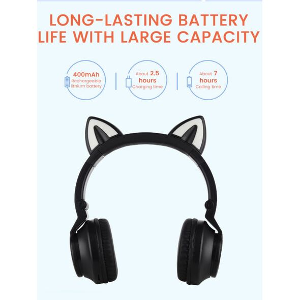 Φορητά ακουστικά με αυτάκια γάτας που φωτίζουν πολύχρωμα με LED, συνδέονται μέσω bluetooth ή καλωδίου 3,5mm με το κινητό, το τάμπλετ ή το PC σας για να απολαύσετε την αγαπημένη σας μουσική όπου κι αν βρίσκεστε!