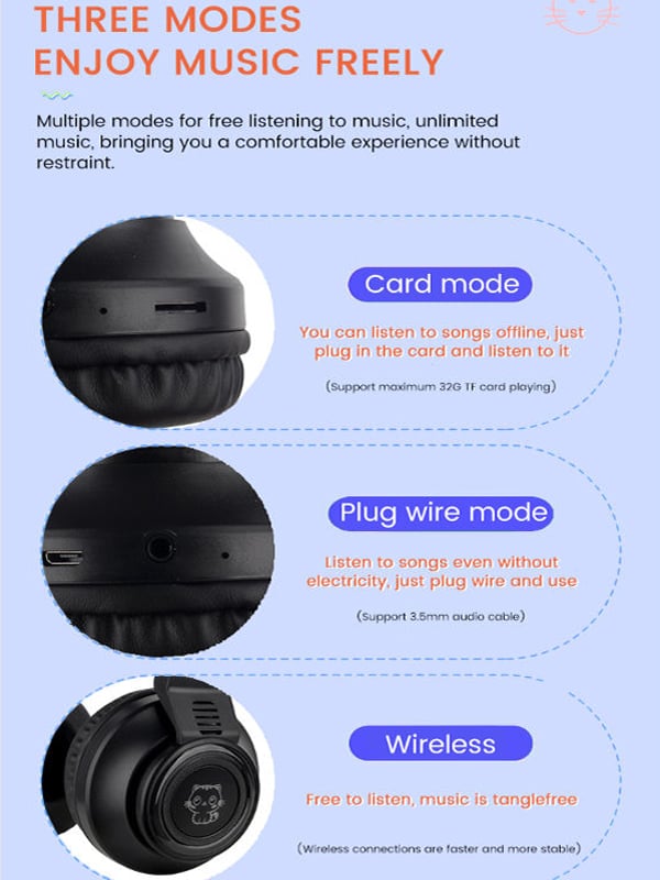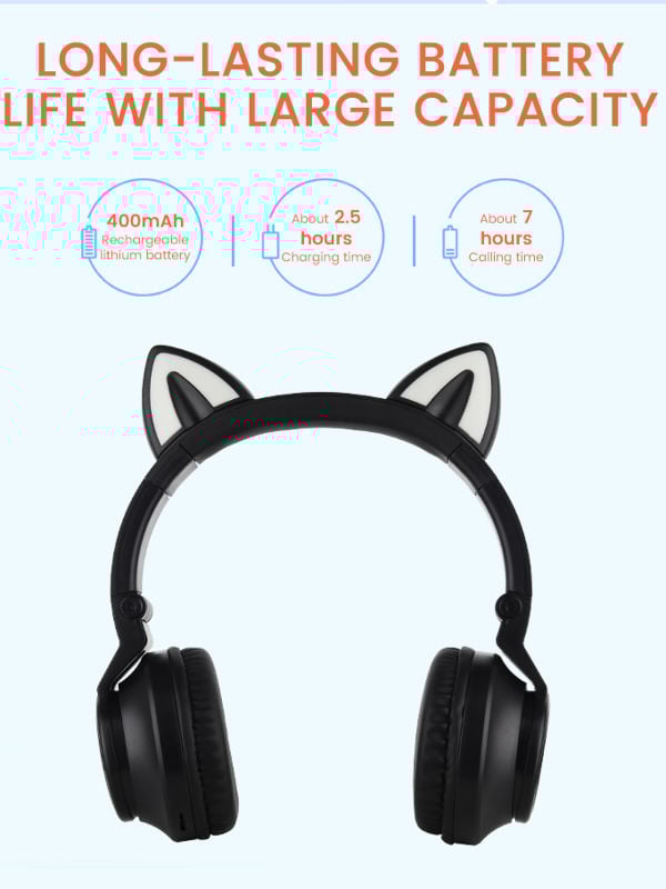 Τα “γατίσια” ακουστικά διαθέτουν ειδικά μαξιλαράκια για να τα φοράτε χωρίς πρόβλημα για ώρες, πεντακάθαρο ήχο και μπαταρία που διαρκεί για περισσότερες από 7 ώρες συνεχούς λειτουργίας! Φορτίστε τα για 3 ώρες και απολαύστε την αγαπημένη σας μουσική για ώρες!