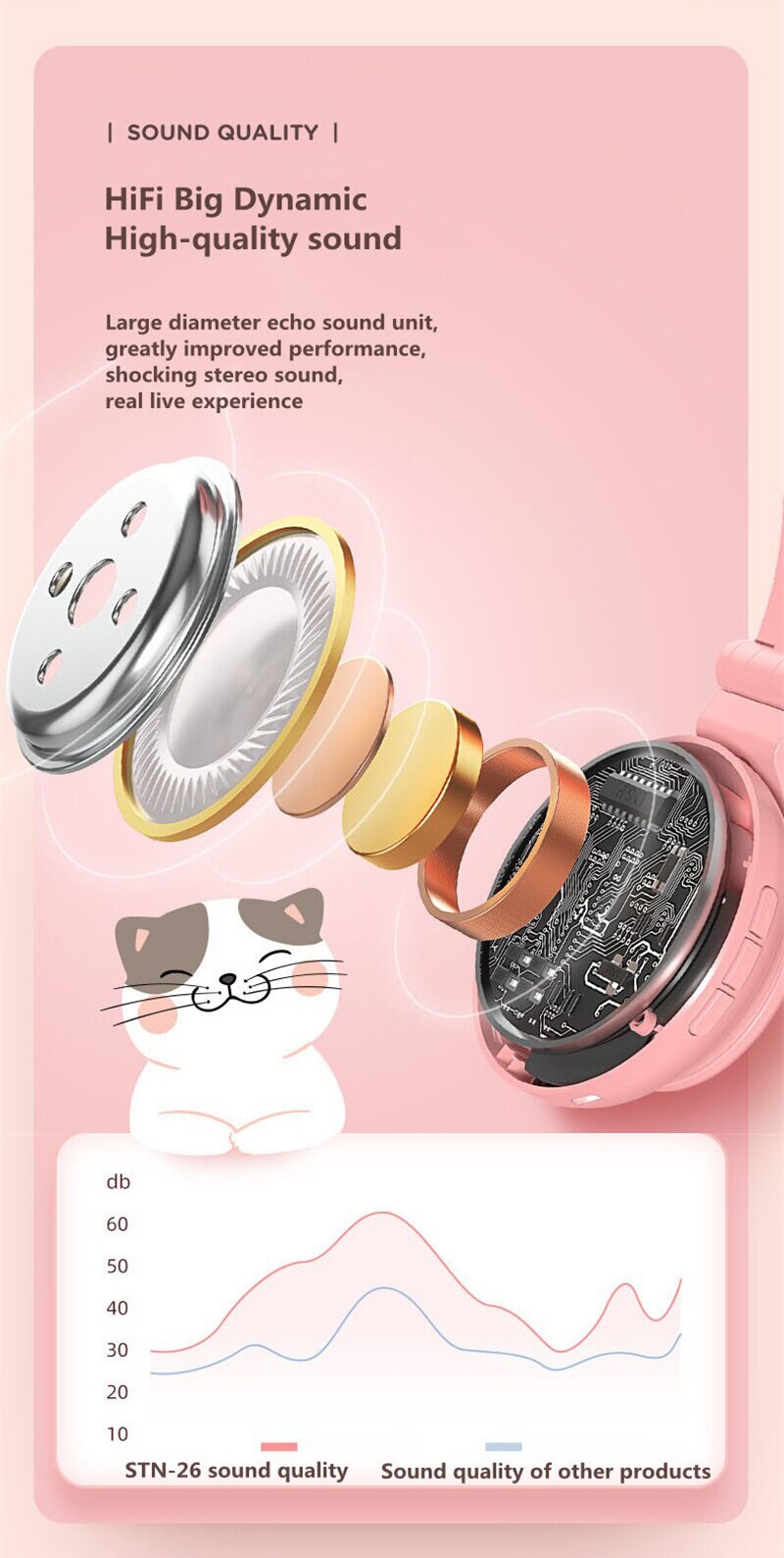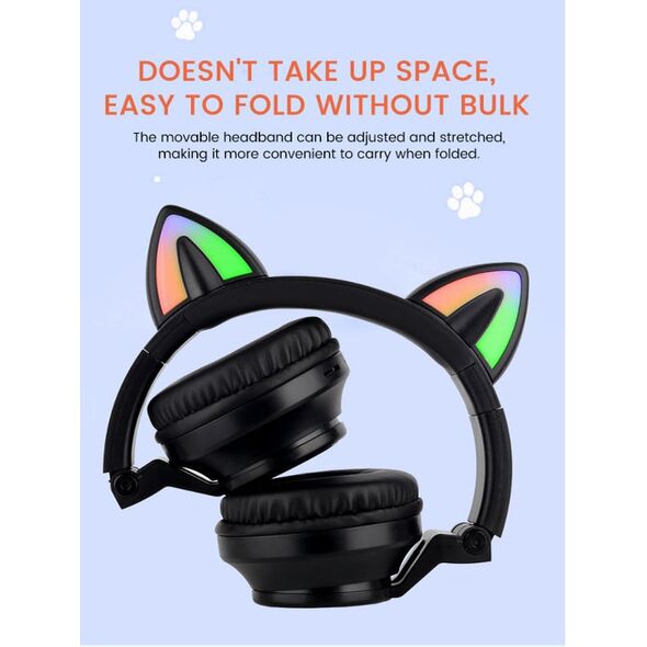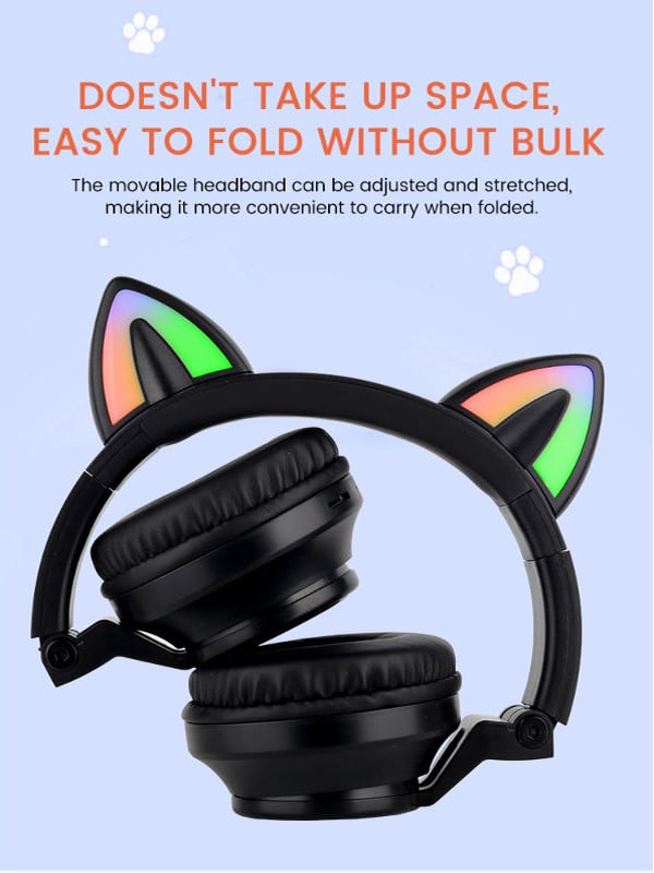 Τα χαριτωμένα αυτιά γάτας στο πάνω μέρος των ακουστικών διαθέτουν αυτάκια με πολύχρωμο φωτισμό LED για ένα ξεχωριστό και μοναδικό look!