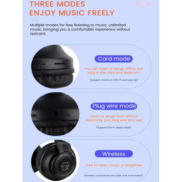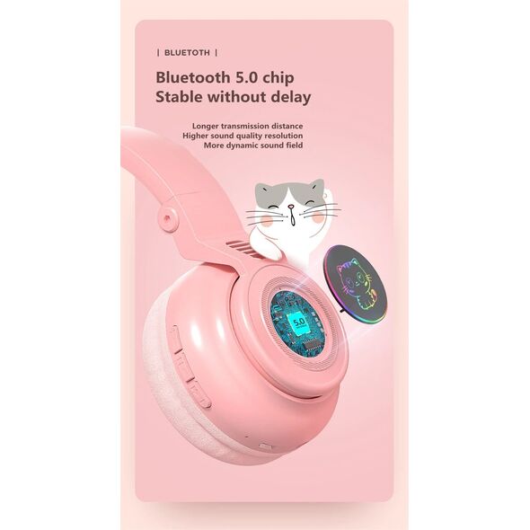 Ασύρματα On-Ear bluetooth ακουστικά LED φωτορυθμικά! Στο πλάι κάθε ακουστικού διαθέτει πολύχρωμα LED με σχέδιο γατούλας, τα οποία παίζουν και αναβοσβήνουν στον ρυθμό της μουσικής που ακούτε στα ακουστικά! Θα τα λατρέψουν μικροί και μεγάλοι!