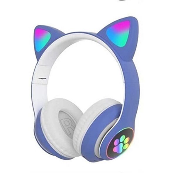 LED Bluetooth Ασύρματα On-Ear Ακουστικά Αυτιά Γάτας με Εναλλασσόμενο Φωτισμό - Wireless Cat Ear Headphones Μπλε