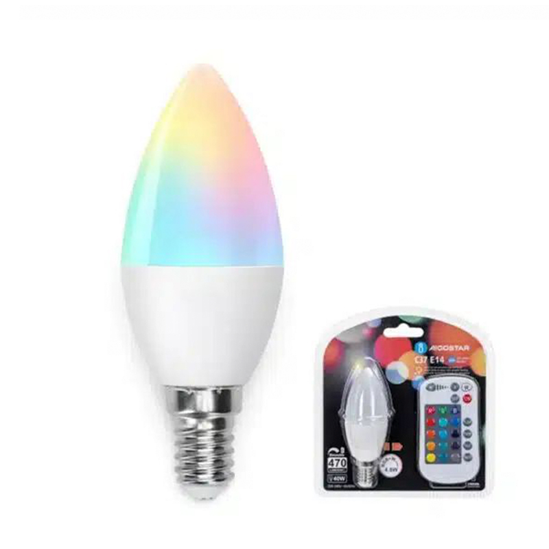 LED Dimmable Λάμπα με Ντουί 4.8W E14 RGBW σε Σχήμα C37 220V με Ασύρματο Χειριστήριο