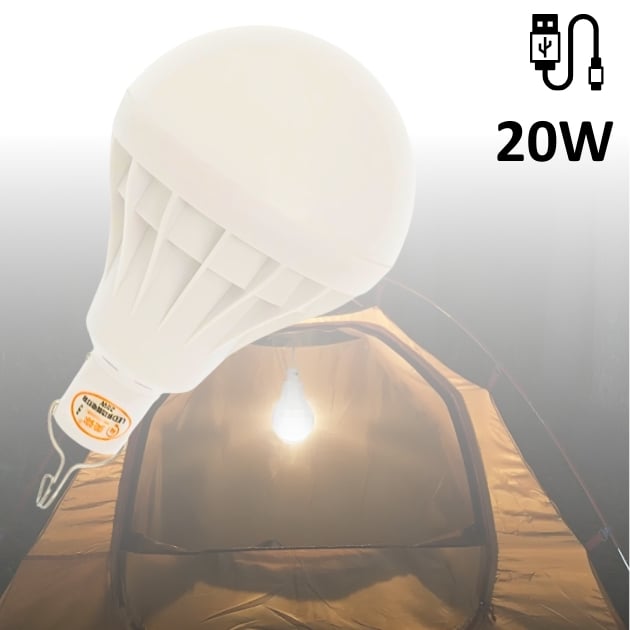 LED Επαναφορτιζόμενη Λάμπα USB 20W 6000K - Με Γάντζο & 5 Λειτουργίες Φωτισμού
