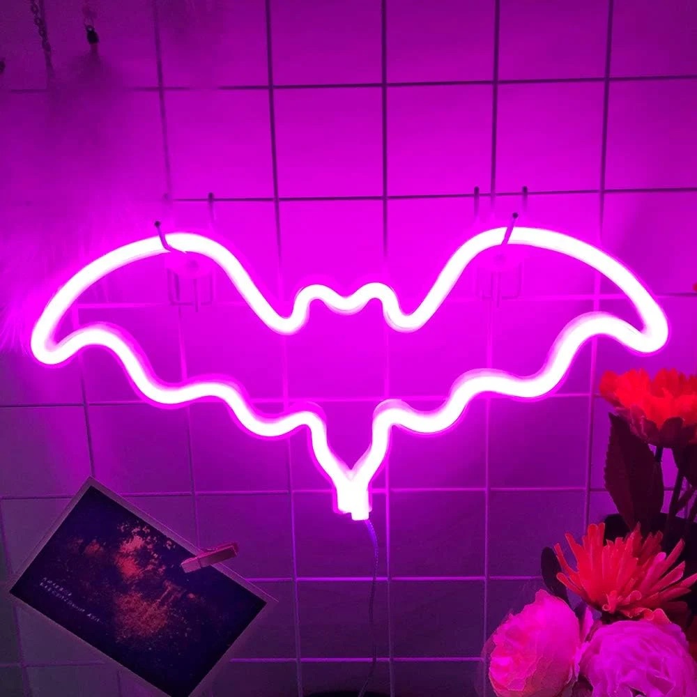 Δημιουργήστε μια μοντέρνα ατμόσφαιρα με το LED επιτοίχιο διακοσμητικό φωτιστικό Neon με νυχτερίδα σε ροζ χρώμα, προσφέροντας ένα ξεχωριστό στοιχείο στη διακόσμησή σας.