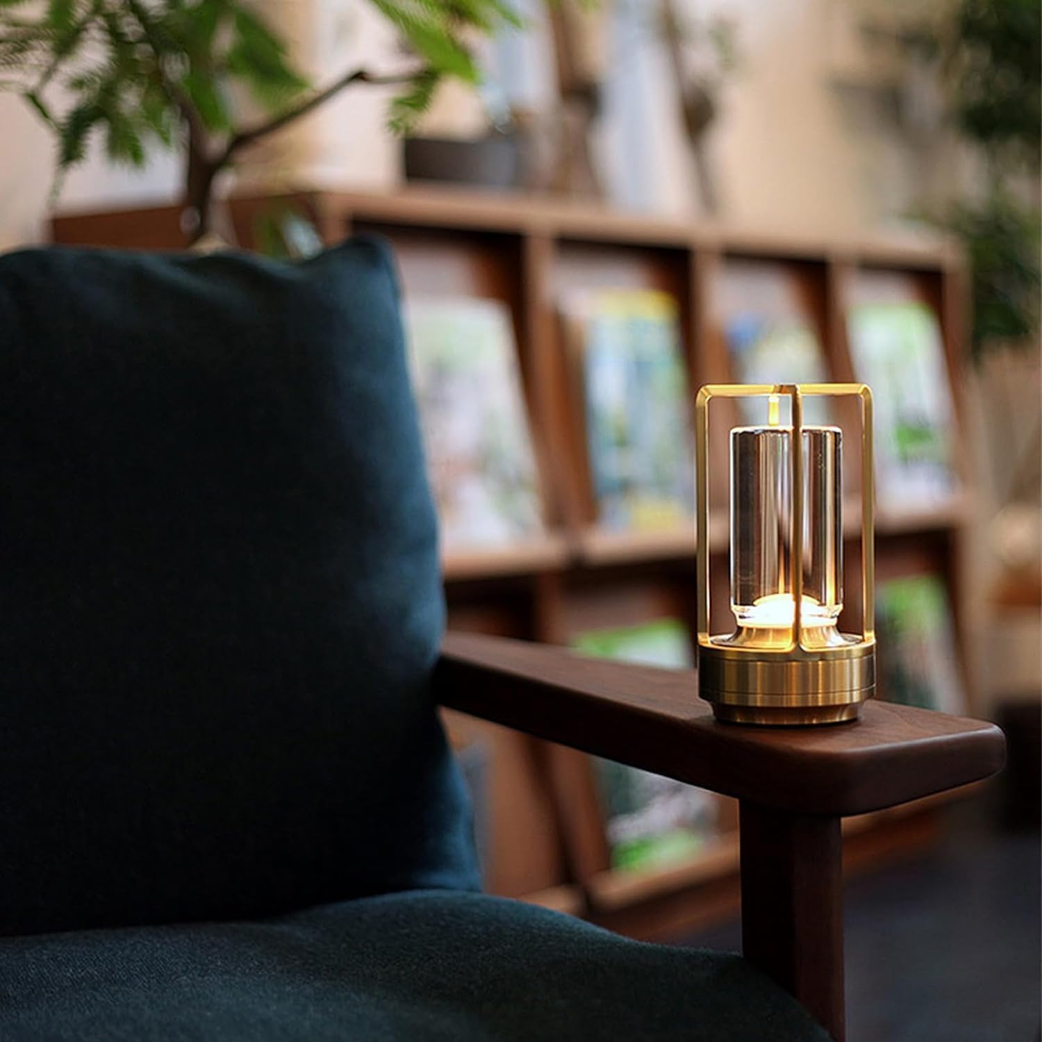 Ο χρυσός σκελετός από ανθεκτικό κράμα αλουμινίου και η διάφανη κρυστάλλινη απόχρωση δημιουργούν μοναδικά παιχνίδια φωτός, ιδανικά για το γραφείο, το σαλόνι ή την κρεβατοκάμαρα.