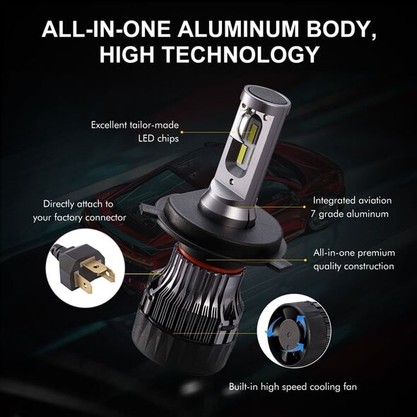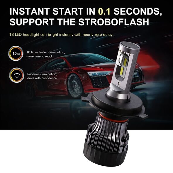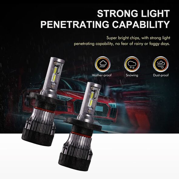 Φωτίστε το δρόμο σας εκθαμβωτικά και υπό την τέλεια γωνία εγκαθιστώντας ένα Ultra White LED kit H4 / 6500Κ, με ρυθμιζόμενη γωνία φωτισμού, κατανάλωση μόλις 60W και εξαιρετικά μεγάλη συνολική φωτεινότητα 10.000LM (2x5000Lm). Σετ H4 με δύο σκάλες φωτισμού (High, Low).
