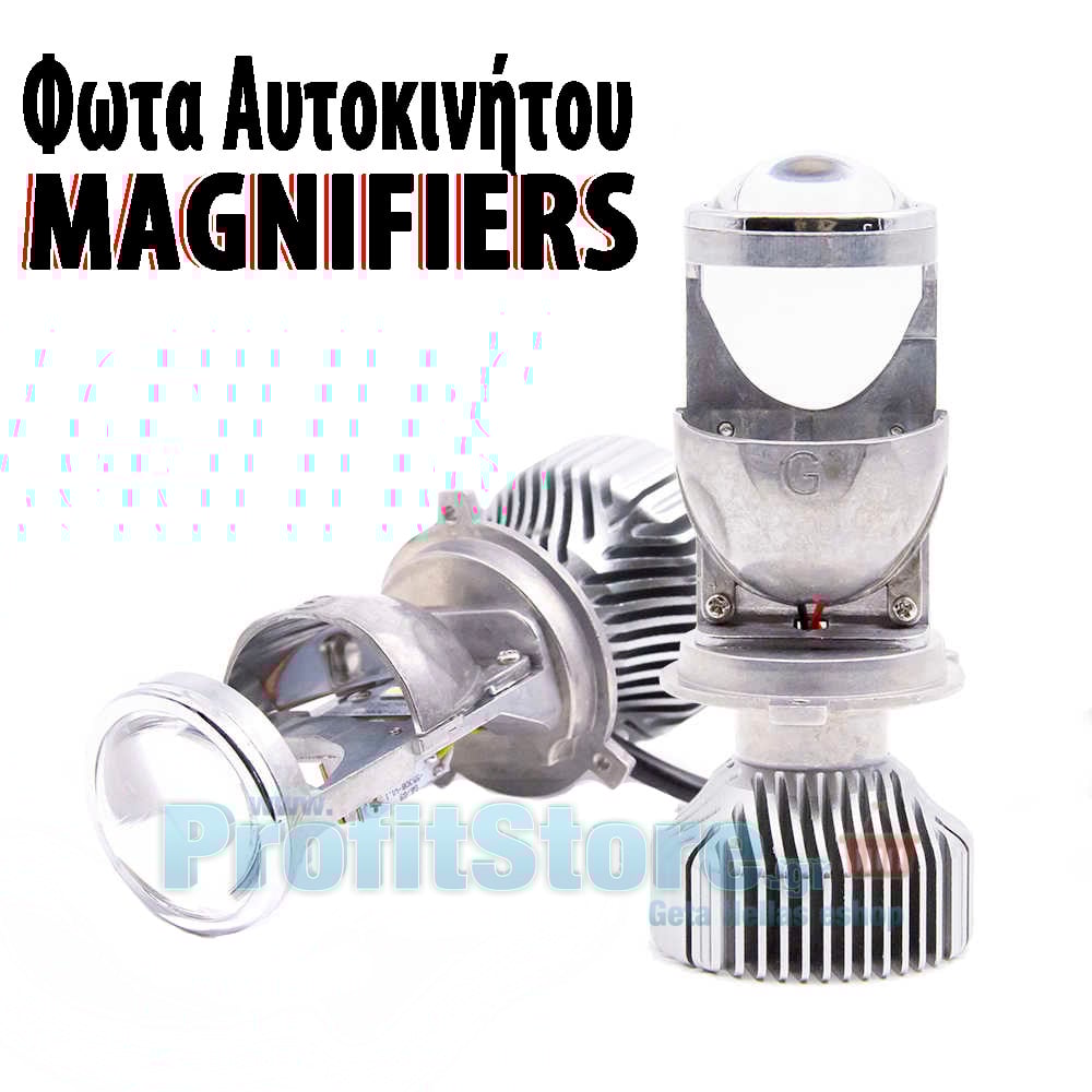 Φωτίστε το δρόμο σας εκθαμβωτικά και υπό την τέλεια γωνία εγκαθιστώντας ένα Magnifier LED kit H4 / 5500Κ, με μεγεθυντικό φακό και κάτοπτρο, κατανάλωση μόλις 70W και εξαιρετικά μεγάλη συνολική φωτεινότητα 12000LM (2x6000Lm). Σετ H4 με δύο σκάλες φωτισμού (High, Low).