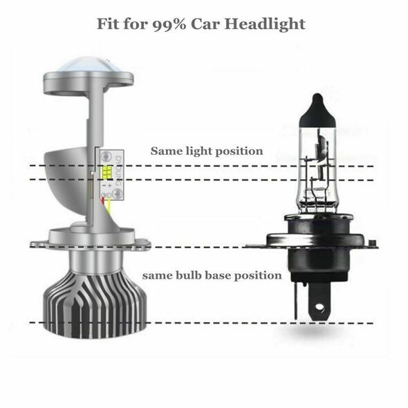 Φωτίστε το δρόμο σας εκθαμβωτικά και υπό την τέλεια γωνία εγκαθιστώντας ένα Magnifier LED kit H4 / 5500Κ, με μεγεθυντικό φακό και κάτοπτρο, κατανάλωση μόλις 70W και εξαιρετικά μεγάλη συνολική φωτεινότητα 12000LM (2x6000Lm). Σετ H4 με δύο σκάλες φωτισμού (High, Low).