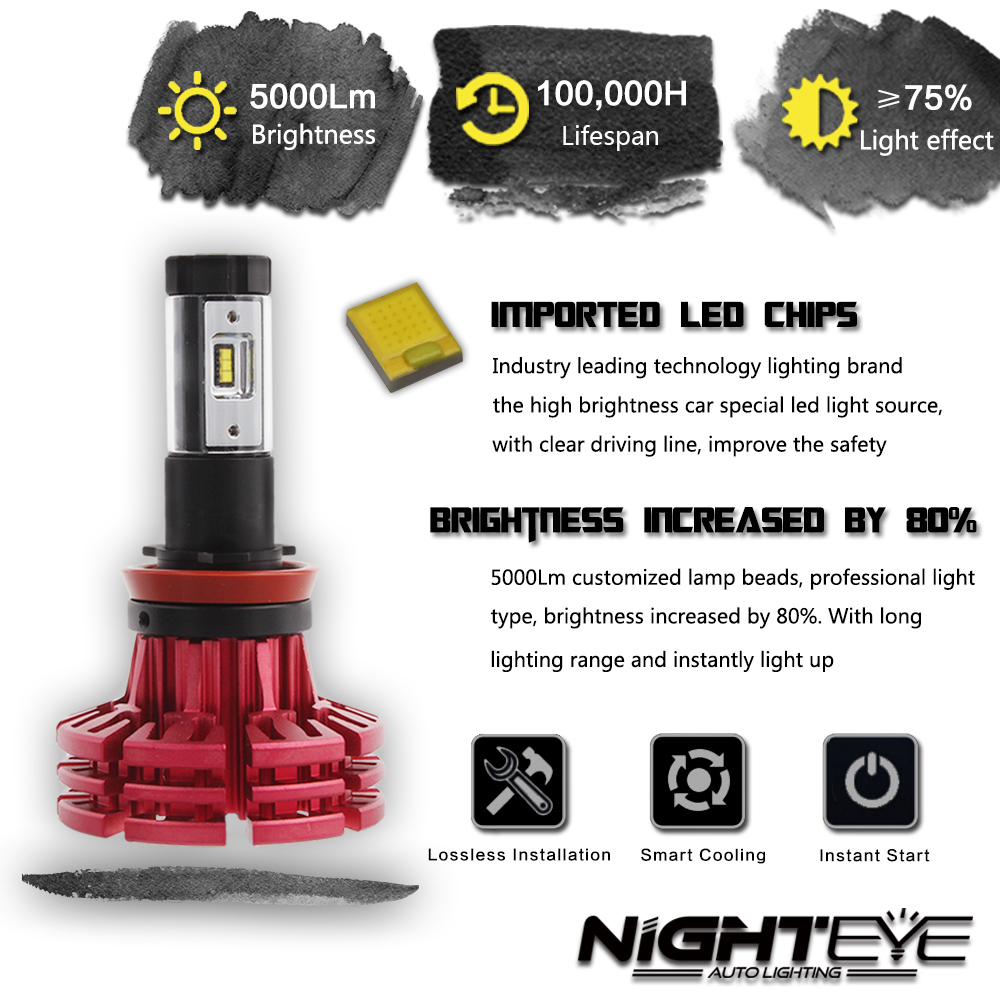 LED Φώτα Αυτοκινήτου NightEye® H4 6500K 10000LM (2x5000) 60W (2x30W) x1 A344 CAN BUS με Ballast 12-24V - 2 x Λάμπες