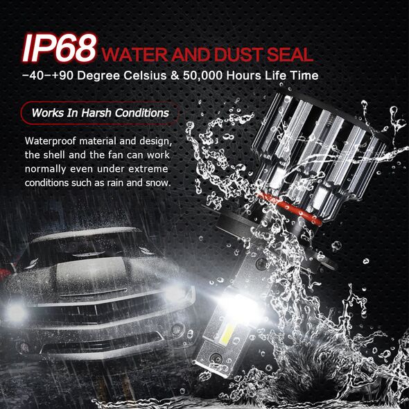 - Οι λαμπτήρες είναι εξοπλισμένοι με της νεότερης γενιάς (3ης γενιάς) LED chips Automotive Grade μεγάλης φωτεινότητας και εξαιρετικής ποιότητας. Φτάνουν αμέσως το 100% της απόδοσής τους, παράγοντας εντυπωσιακό ψυχρό φωτισμό χωρίς ''Black Spots'' για ασφαλή οδήγηση.