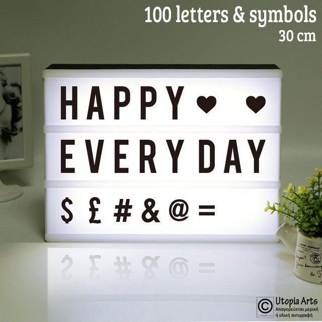Πρόκειται για έναν φωτεινό πίνακα με σχέδιο στην επιφάνεια του οποίου μπορείτε να τοποθετήσετε καρτέλες με γράμματα και σύμβολα και να σχηματίσετε μία φράση που εσείς επιθυμείτε!