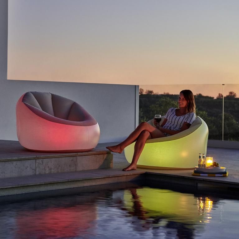 Ξεχωρίστε με την φουσκωτή πολυθρόνα LED της Bestway, ιδανική για τον κήπο, το εσωτερικό του σπιτιού σας ή το camping.