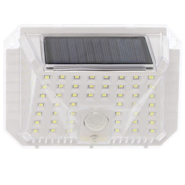 Επιτοίχιο ηλιακό φωτιστικό σε λευκό χρώμα, που συγκεντρώνει και αποθηκεύει ηλιακή ενέργεια για τη λειτουργία του, ώστε να μη χρειάζεται να συνδεθεί σε παροχή ρεύματος. Διαθέτει ανιχνευτή κίνησης για να ενεργοποιείται όταν εντοπίσει κίνηση εντός της εμβέλειάς του!