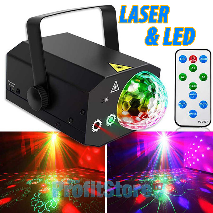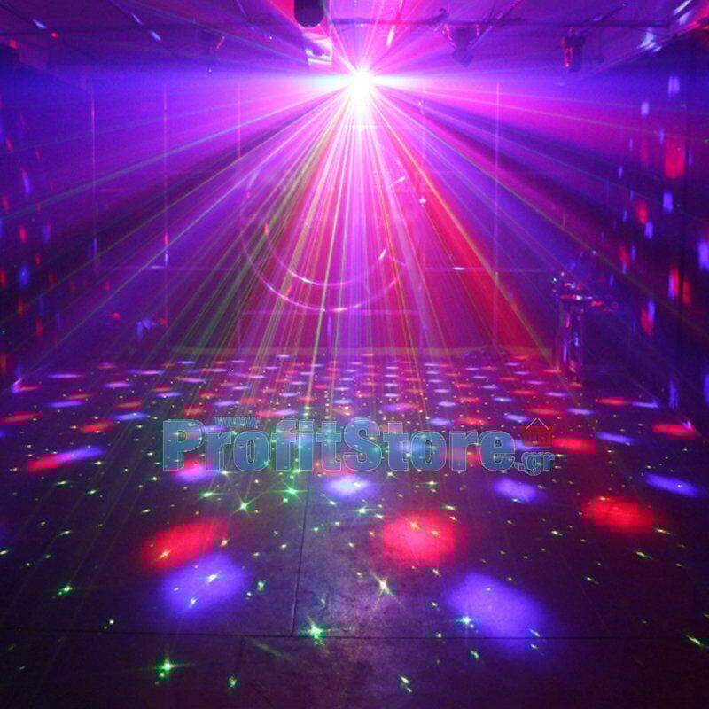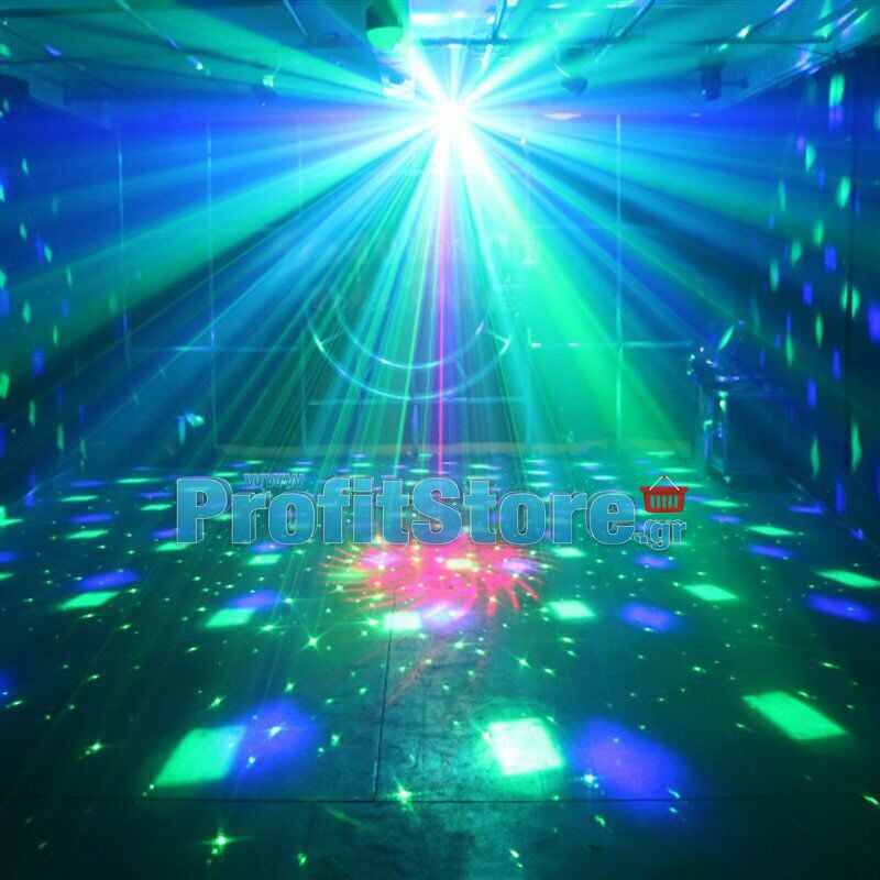 Αυτό το τηλεχειριζόμενο Combo φωτορυθμικό - πλήρες σετ πακέτο φωτισμού, θα δημιουργήσει πληθώρα εκπληκτικών φωτιστικών effect, καθηλώνοντας του πάντες. Ενσωματώνει υπέρ-δυνατό Laser red & green, Πολύχρωμα Beam Led effects και Strobe effect!