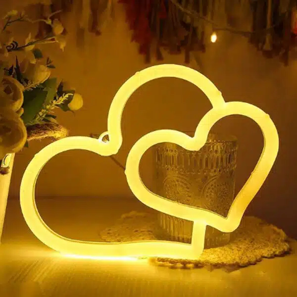Δώστε στο χώρο σας μια γλυκιά νότα χάρη στο επιτοίχιο φωτιστικό Neon LED με διπλή καρδιά, που προσφέρει μια ρομαντική διακοσμητική πινελιά σε κάθε δωμάτιο.