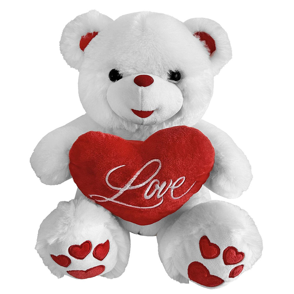 Λευκό Αρκουδάκι Αγάπης με Κόκκινη Καρδιά 30cm