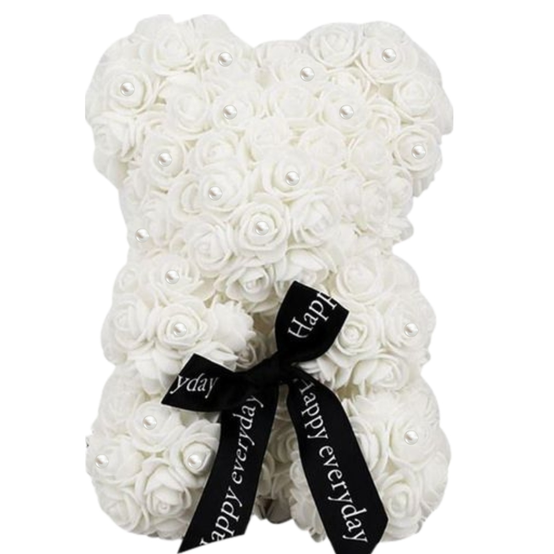 Λευκό Αρκουδάκι από Τεχνητά Τριαντάφυλλα και Πέρλες 25 cm