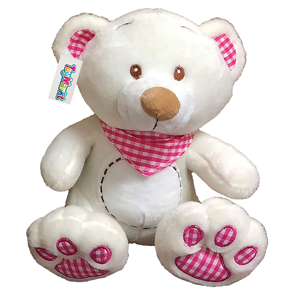 Λούτρινο Λευκό Αρκουδάκι με Καρό Μαντήλι και Πατούσες 35εκ