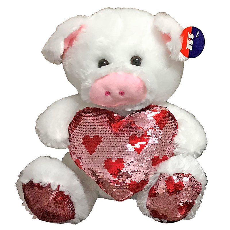 Λούτρινο Λευκό Γουρουνάκι με Κόκκινη Καρδιά από Πούλιες 35cm