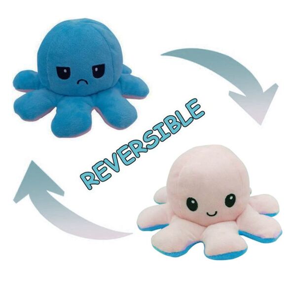 Λούτρινο Παιχνίδι Χταπόδι που Αλλάζει Διάθεση - Mood Swings Reversible Happy / Angry Octopus Μπλε/Λευκό