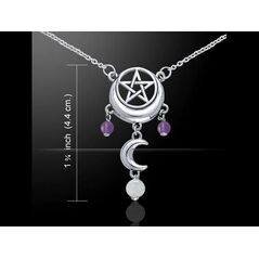 Η Σελήνη, αρχαίο σύμβολο ομορφιάς, διαίσθησης και δύναμης ενώνεται με την πεντάλφα, σύμβολο αιώνιας προστασίας και επιθυμίας. Το φυλαχτό αυτό ενδυναμώνεται από τον Αμέθυστο, λίθο της ομορφιάς και της γοητείας και τη Φεγγαρόπετρα που ενισχύει τις ψυχικές δυνάμεις.