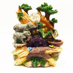 Συντριβάνι με ελέφαντα, που στο Feng Shui αποτελεί σύμβολο της δύναμης, της σοφίας, της σταθερότητας και της γονιμότητας και με την προβοσκίδα προς τα πάνω αντιπροσωπεύει την κατάκτηση, τη νίκη και την ανοδική πορεία της γνώσης προς τη σοφία.