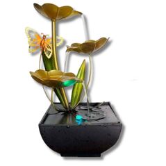 Διακοσμητικό συντριβάνι Feng Shui με χρυσά φύλλα και πεταλούδα. Δημιουργεί χαλαρωτική ατμόσφαιρα με LED φωτισμό και απαλή ροή νερού. Ιδανικό για σαλόνι, γραφείο ή χώρο υποδοχής. Εύκολη λειτουργία με ηλεκτρική αντλία.