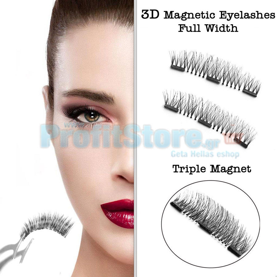 Μαγνητικές Ψεύτικες Βλεφαρίδες Πλήρους Μεγέθους Τριπλού Μαγνήτη - 3D Full Width Magnetic Eyelashes Extension