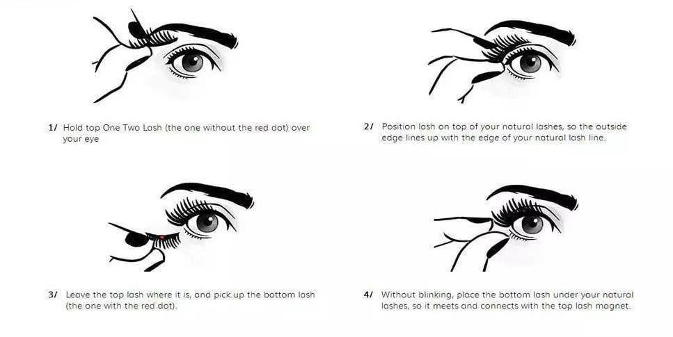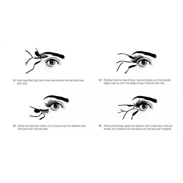 Με σταθερό βλέμμα κοιτώντας ευθεία τοποθετήστε την δεύτερη βλεφαρίδα κάτω από τις δικές σας στο ίδιο ύψος με την πρώτη που εφαρμόσατε από πάνω έτσι ώστε οι δύο μαγνήτες να ενωθούν.