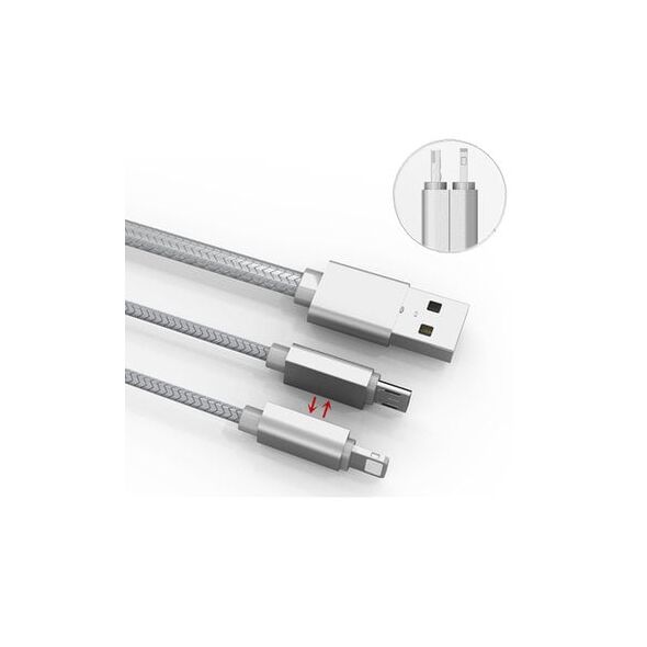 Μαγνητικό πλεκτό USB Καλώδιο Φορτιστής 2 σε 1 για iPhone & android LDNIO LC86 Data Cable Micro USB+Lighting (iPHONE5/6/7/SE).