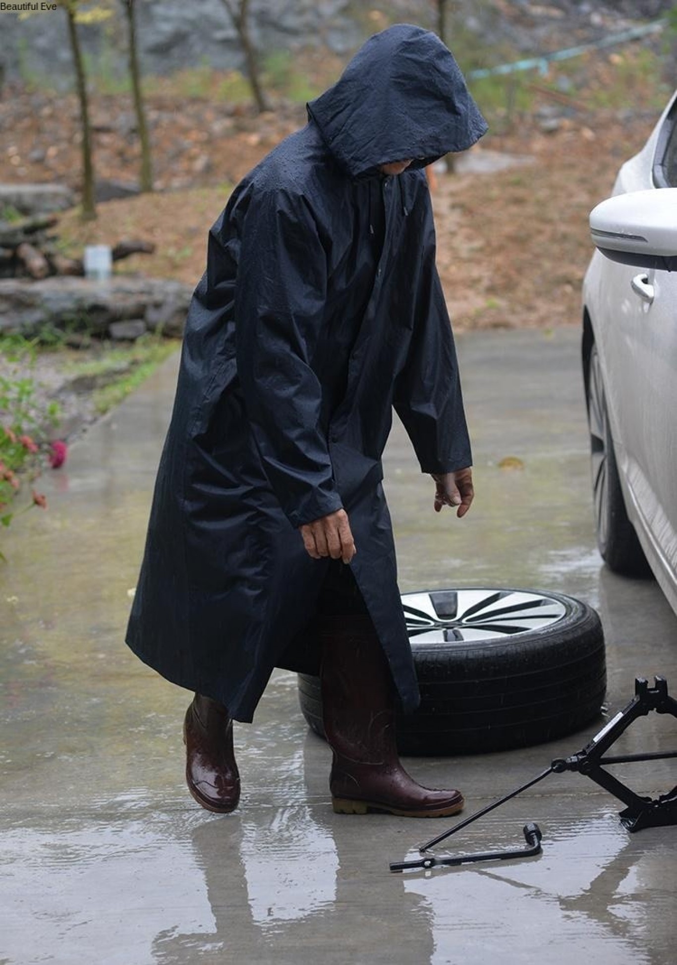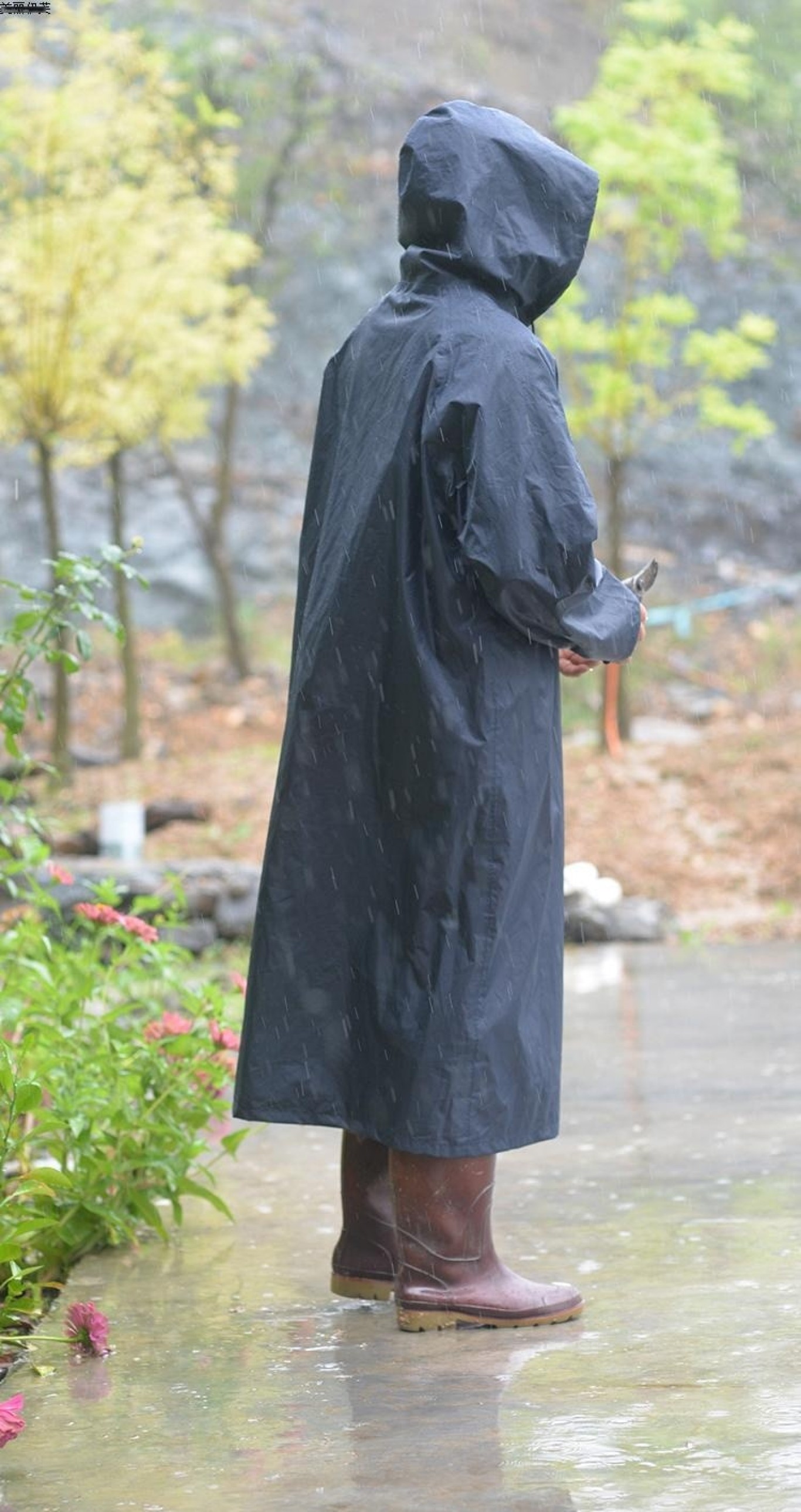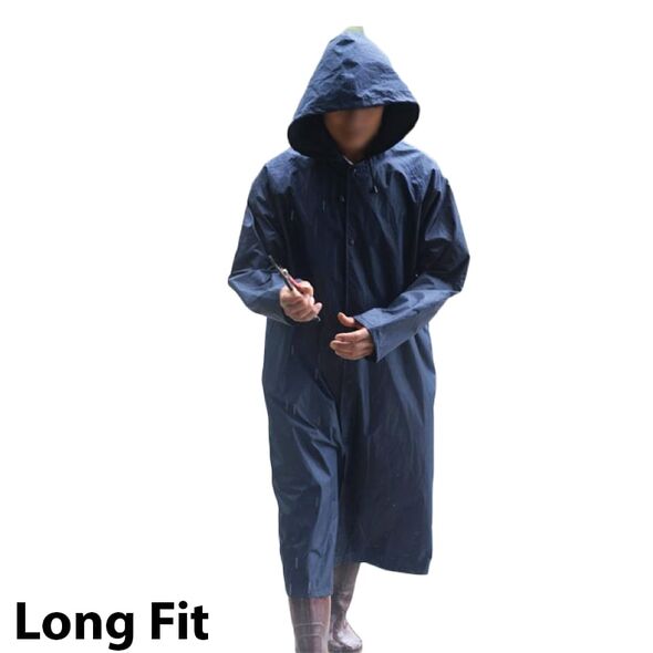 Μακρύ Αδιάβροχο - Αντιανεμικό τύπου Καπαρντίνα Long Fit με Κουκούλα & Φερμουάρ 150cm One Size Blue Black Raincoat