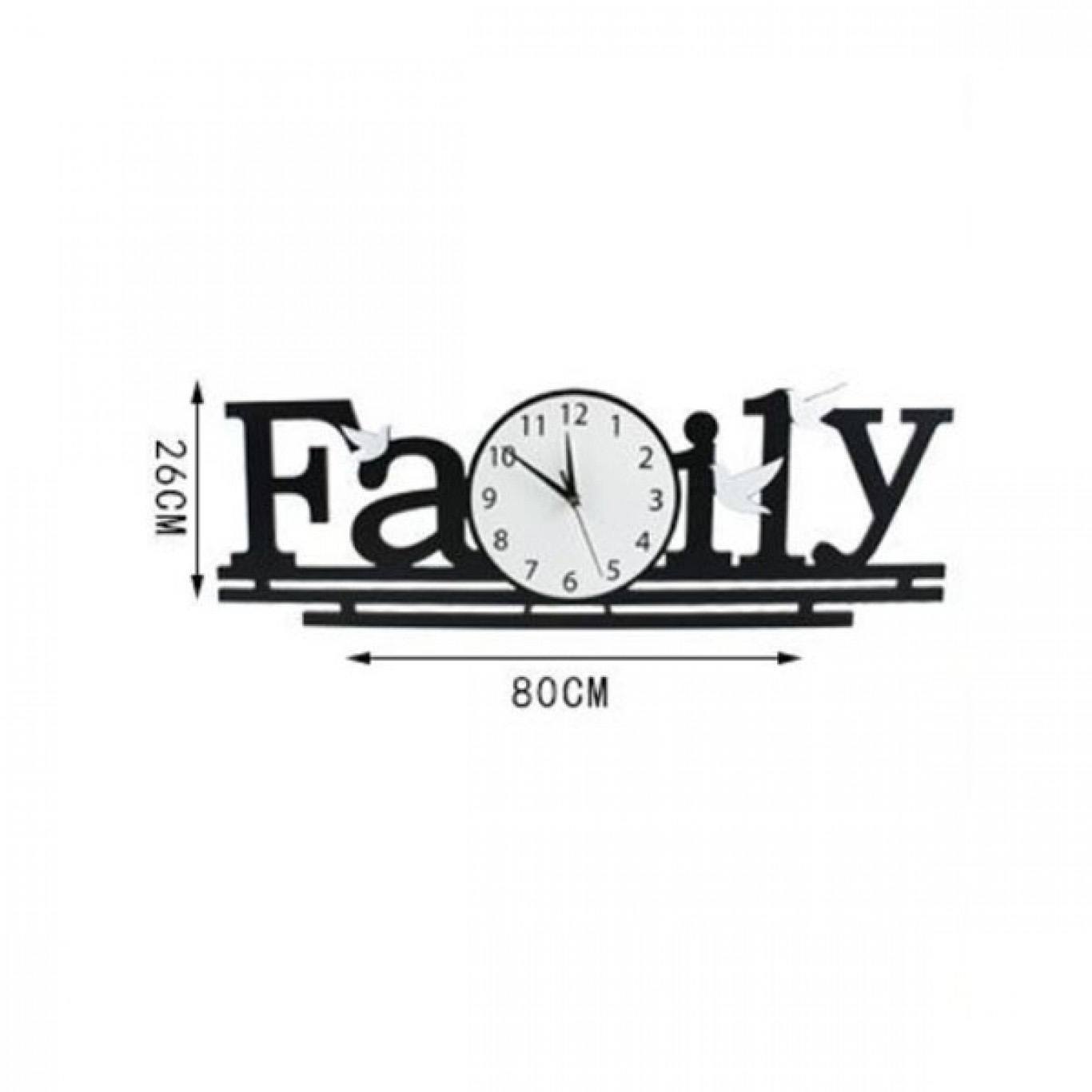 - 1 x Μαύρο Pολόι Τοίχου Family από Υψηλής Ποιότητας Ίνες Ξύλου 80x26cm