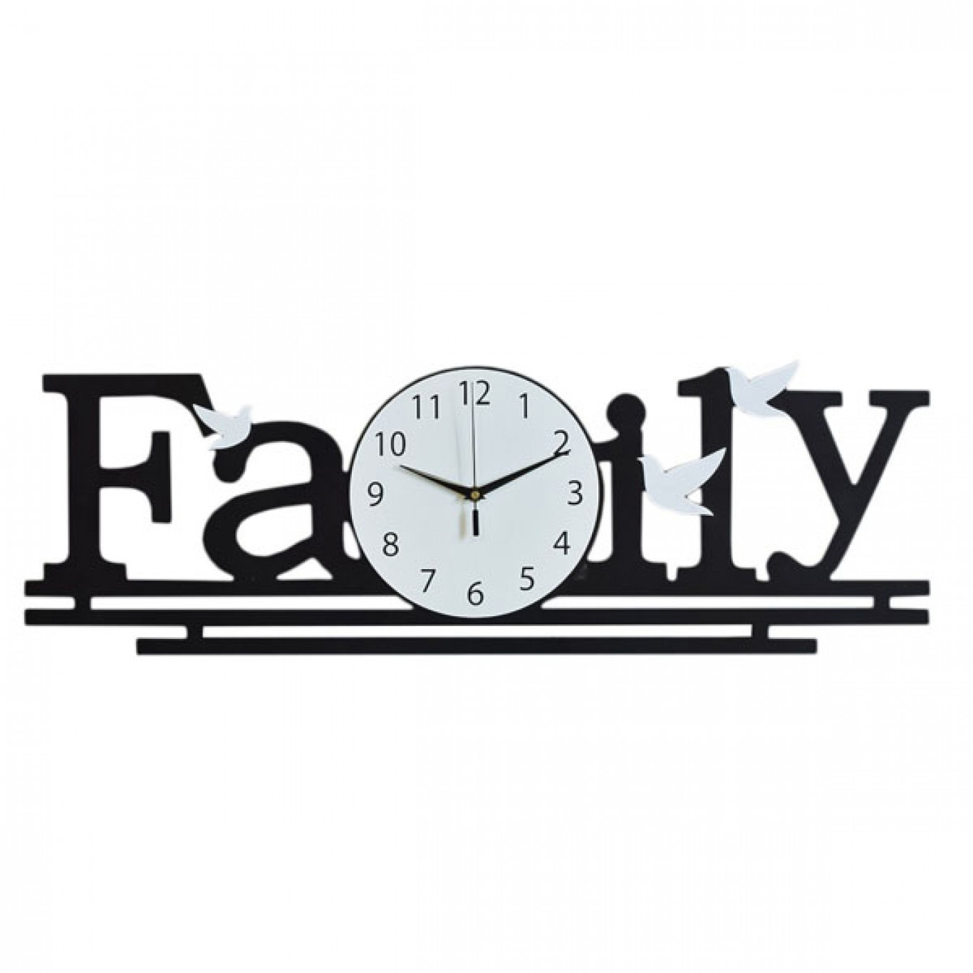 Μαύρο Pολόι Τοίχου Family από Υψηλής Ποιότητας Ίνες Ξύλου 80x26cm