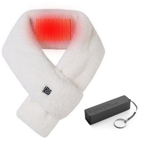 MDHL Ηλεκτρικό Θερμαινόμενο Κασκόλ Βελούδινο με Δώρο Powerbank - 3 Ρυθμίσεις Θερμοκρασίας - Λευκό