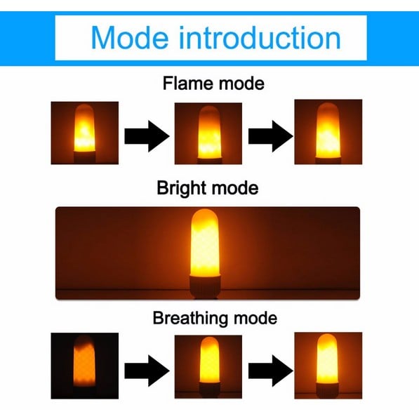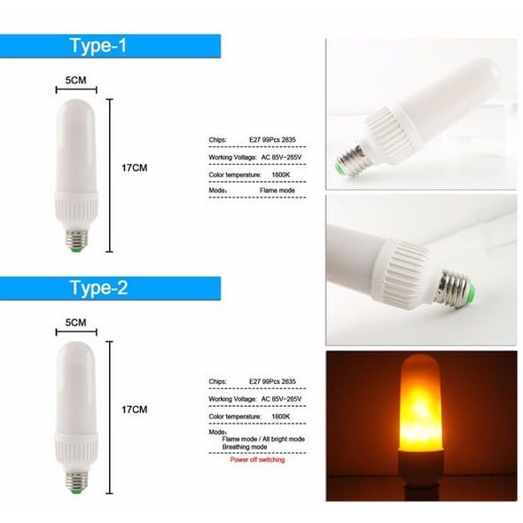 Μια μοναδική λάμπα που διαθέτει δυο λειτουργίες που μπορείτε να επιλέξετε με το πάτημα από το διακόπτη του φωτιστικού που την έχετε συνδέσει: Εφέ Φλόγας, απαλό ζεστό χρώμα.