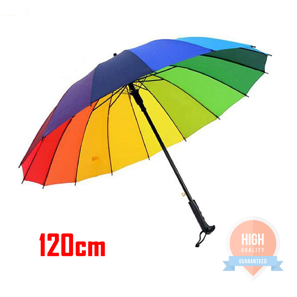 Μεγάλη Ομπρέλα Βροχής 120cm Ουράνιο Τόξο 16 Ακτίνων με Εργονομική Λαβή Χειροκίνητη