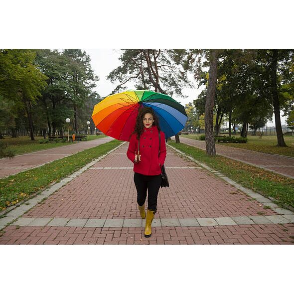 Ένας θαυμάσιος τρόπος για να ''φωτίσετε'' μια βροχερή μέρα. Η ομπρέλα ουράνιο τόξο διαθέτει 16 ακτίνες που την κάνουν πολύ ανθεκτική στον άνεμο και στην βροχή και 16 υπέροχα χρώματα για να ξεχωρίζετε ακόμα και στην βροχή.