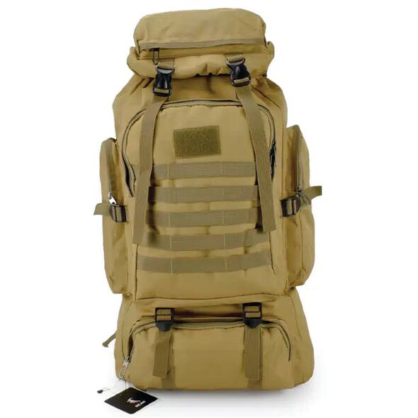 Μεγάλο Αδιάβροχο Επιχειρησιακό Σακίδιο Πλάτης Καφέ Ανοιχτό 60L Πεζοπορίας ή Camping