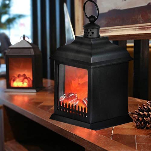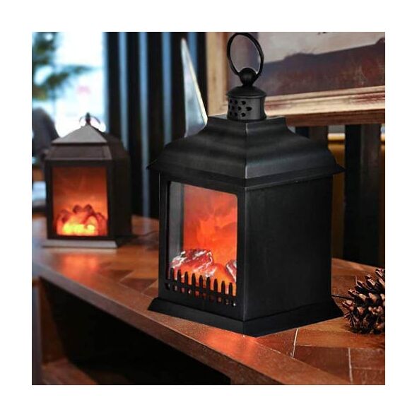 Μεγάλο Διακοσμητικό Φωτιστικό Φανάρι - Τζάκι με Εφέ Φλόγας - LED Fireplace Lantern 35x22x16cm