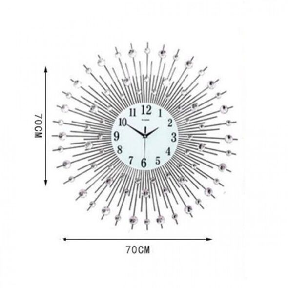 - 1 x Μεγάλο Μεταλλικό Ρολόι Τοίχου Kαθρέφτης - 'Ηλιος με Κρύσταλλα 70x70cm